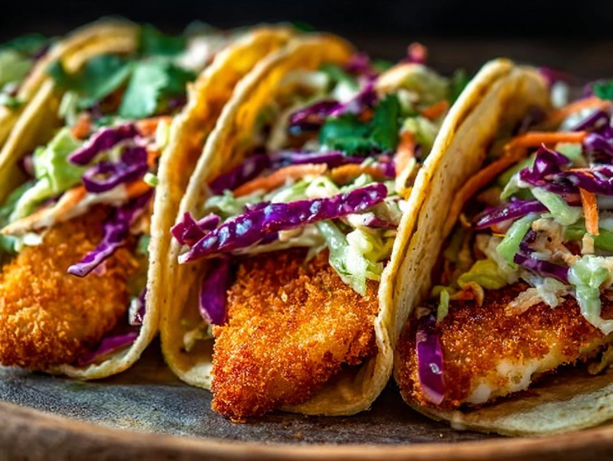 Crispy Fish Tacos with Cilantro Lime Slaw